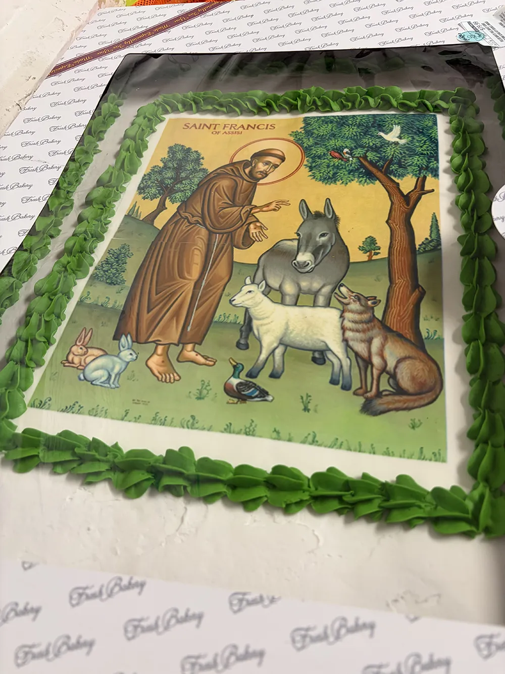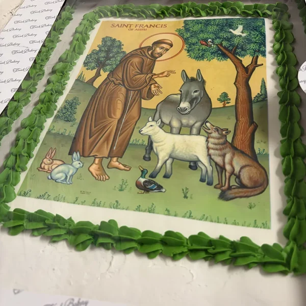 Following the classroom experience, the whole group went outside to do a clean-up of the parish grounds. When they finished, they celebrated with a St. Francis of Assisi cake.