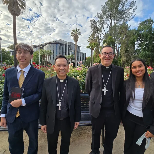 Our contingent came from Our Lady of Guadalupe Parish (San Diego), and Mater Dei and Cathedral Catholic high schools. Our prayers went with them. Our group included Bishop Michael Pham, Auxiliary Bishop Felipe Pulido and Jesuit Father Scott Santarosa, of Our Lady of Guadalupe Parish.