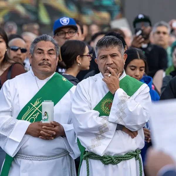 “We ask you to pray for the individuals detained at those sites, for the families and communities that love them, and for the people who are carrying out orders of a system that is being cruel and inhumane,” said Jesuit Father Scott Santarosa, from Our Lady of Guadalupe Parish.